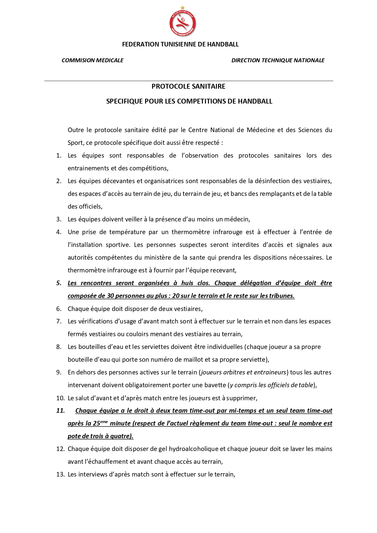 PROTOCOLE SANITAIRE SPÉCIFIQUE POUR LES COMPÉTITIONS DE HANDBALL 14 août 2020 Communiqués, Désignations, Featured, Les News de la FTHB, Photo, Publications Partager Facebook Twitter Google + Partager :Cliquez pour partager sur Twitter(ouvre dans une nouvelle fenêtre)Cliquez pour partager sur Facebook(ouvre dans une nouvelle fenêtre)Cliquez pour partager sur Google+(ouvre dans une nouvelle fenêtre) Articles similaires Partager Facebook Twitter Google +