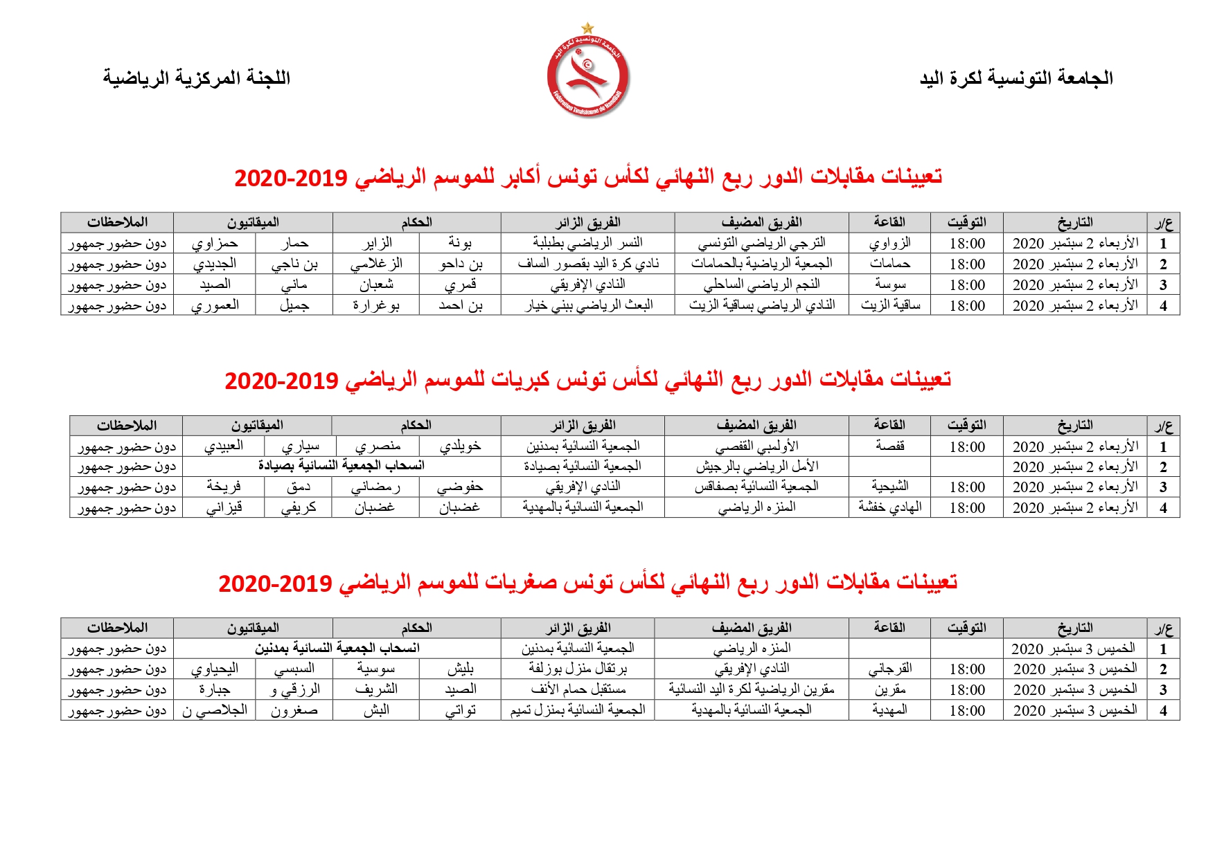 Désignation des Arbitres Quarts de Finale Coupe de Tunisie Seniors Hommes, Dames & Cadettes Filles 28 août 2020 Communiqués, Désignations, Featured, Les News de la FTHB, Photo, Publications Partager Facebook Twitter Google + Partager :Cliquez pour partager sur Twitter(ouvre dans une nouvelle fenêtre)Cliquez pour partager sur Facebook(ouvre dans une nouvelle fenêtre)Cliquez pour partager sur Google+(ouvre dans une nouvelle fenêtre) Articles similaires Partager Facebook Twitter Google +