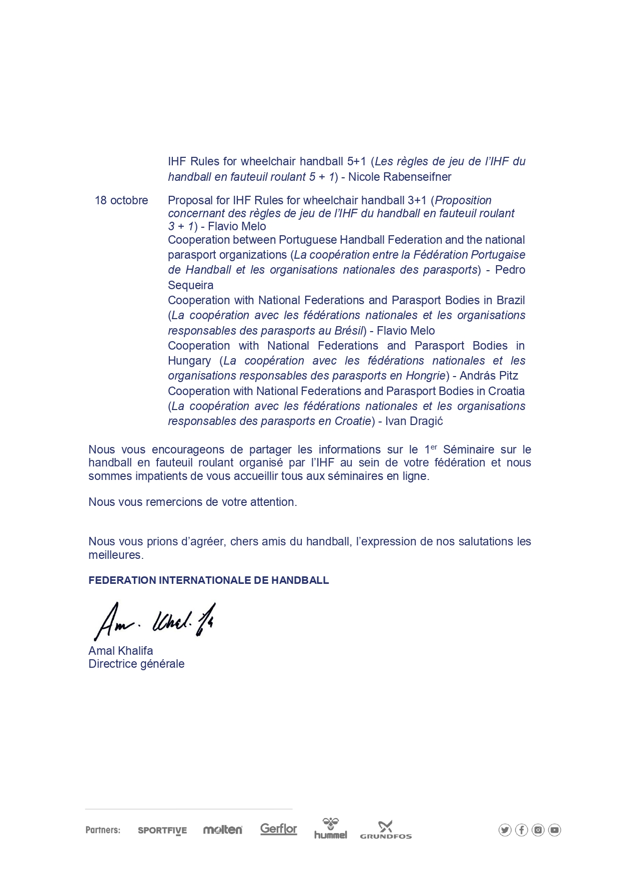 Inscription au premier séminaire en ligne du Handball en Fauteuil Roulant organisé par l’IHF