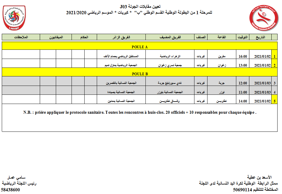 Désignation 1ère journée Nationale « B » Dames (2 et 3/01/2021) 28 décembre 2020 Communiqués, Désignations, Featured, Les News de la FTHB, Photo, Publications Partager Facebook Twitter Google + Partager :Cliquez pour partager sur Twitter(ouvre dans une nouvelle fenêtre)Cliquez pour partager sur Facebook(ouvre dans une nouvelle fenêtre)Cliquez pour partager sur Google+(ouvre dans une nouvelle fenêtre) Articles similaires Partager Facebook Twitter Google +