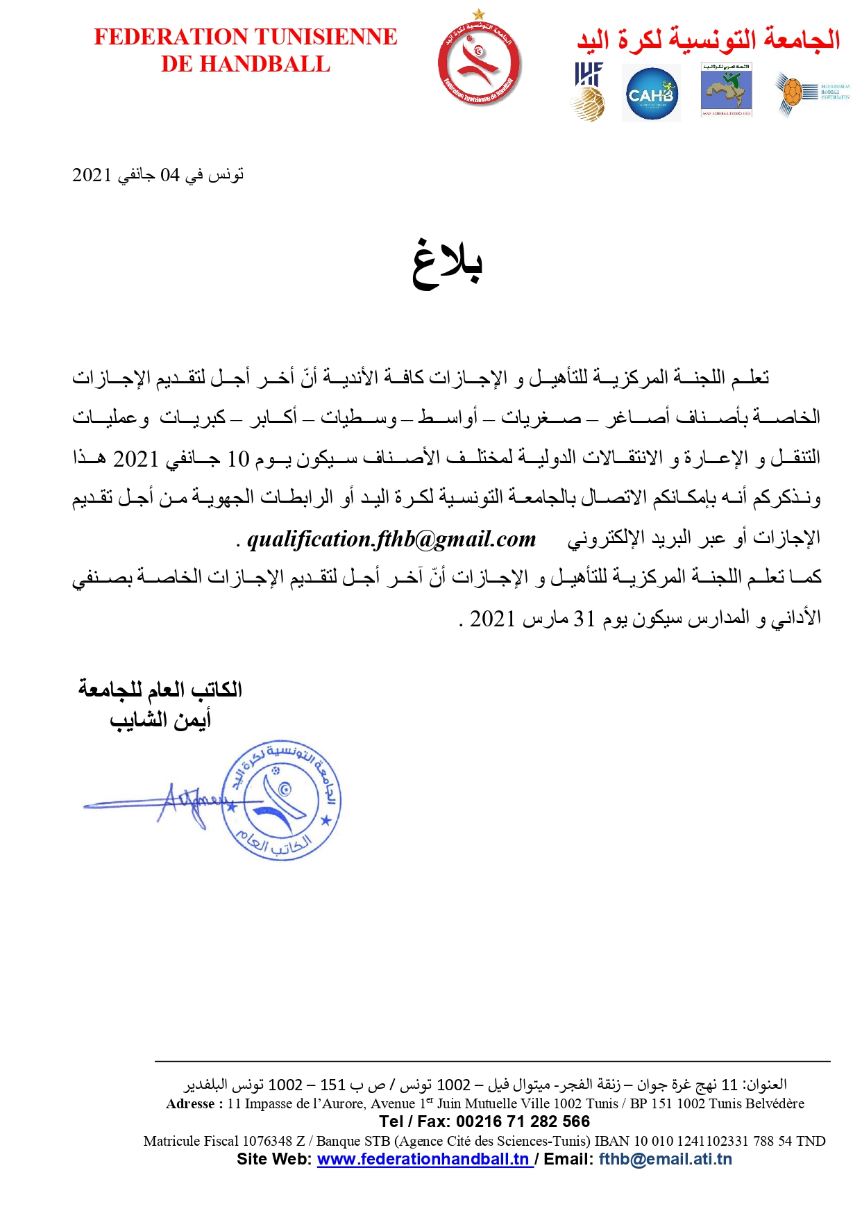 Communiqué : dernier délais et de Qualification de dépôt des Licences des Joueurs 5 janvier 2021 Communiqués, Désignations, Featured, Les News de la FTHB, Photo, Publications Partager Facebook Twitter Google + Partager :Cliquez pour partager sur Twitter(ouvre dans une nouvelle fenêtre)Cliquez pour partager sur Facebook(ouvre dans une nouvelle fenêtre)Cliquez pour partager sur Google+(ouvre dans une nouvelle fenêtre) Articles similaires Partager Facebook Twitter Google +