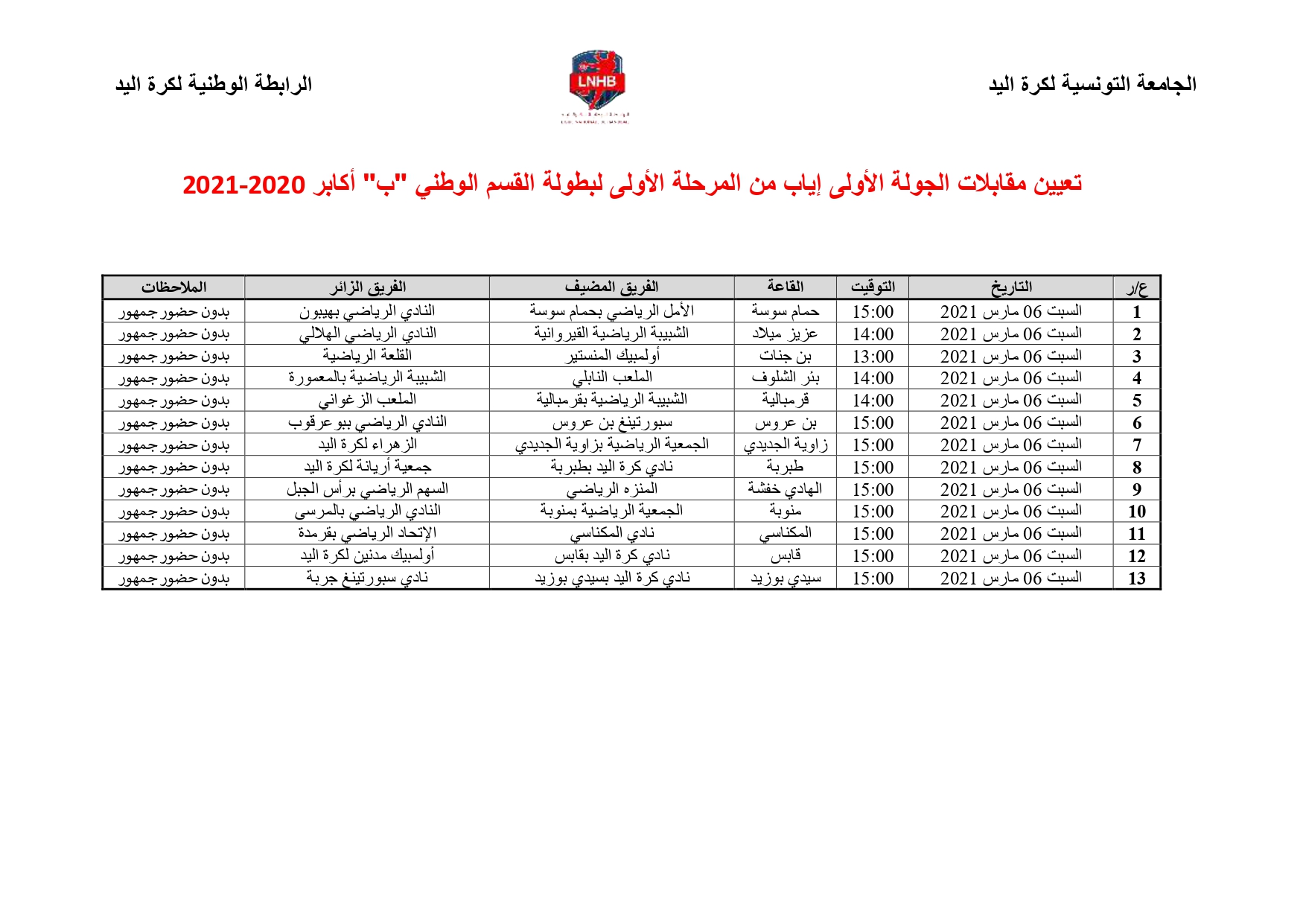 Nationale « B » Hommes : Désignation 1ère journée retour (samedi 7/3/2021)