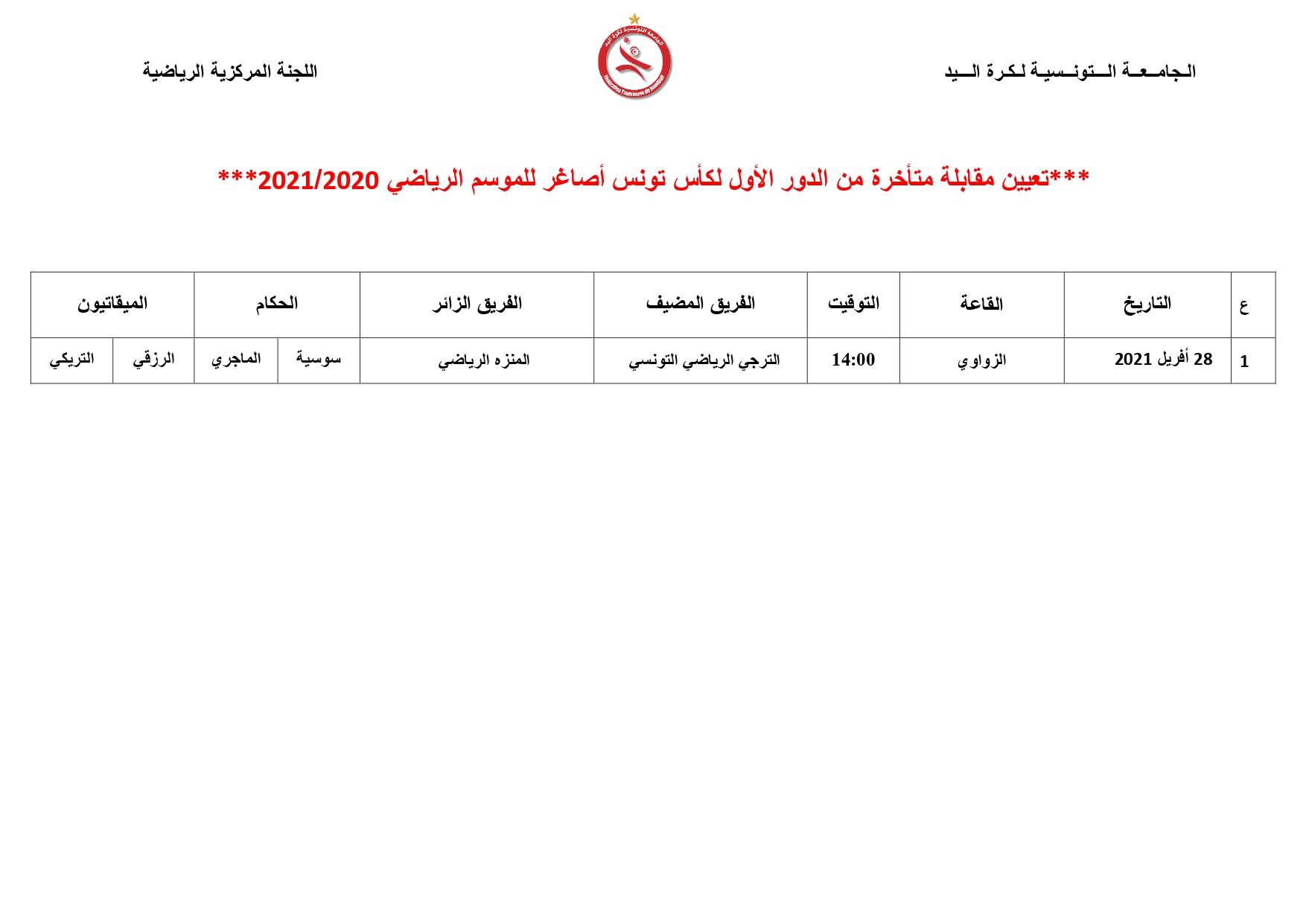Désignation des Arbitres Matchs en Retard Premier Tour Coupe de Tunisie Cadets Garçons 27 avril 2021 Communiqués, Désignations, Featured, Les News de la FTHB, Photo, Publications Partager Facebook Twitter Google + Partager :Cliquez pour partager sur Twitter(ouvre dans une nouvelle fenêtre)Cliquez pour partager sur Facebook(ouvre dans une nouvelle fenêtre)Cliquez pour partager sur Google+(ouvre dans une nouvelle fenêtre) Articles similaires Partager Facebook Twitter Google +