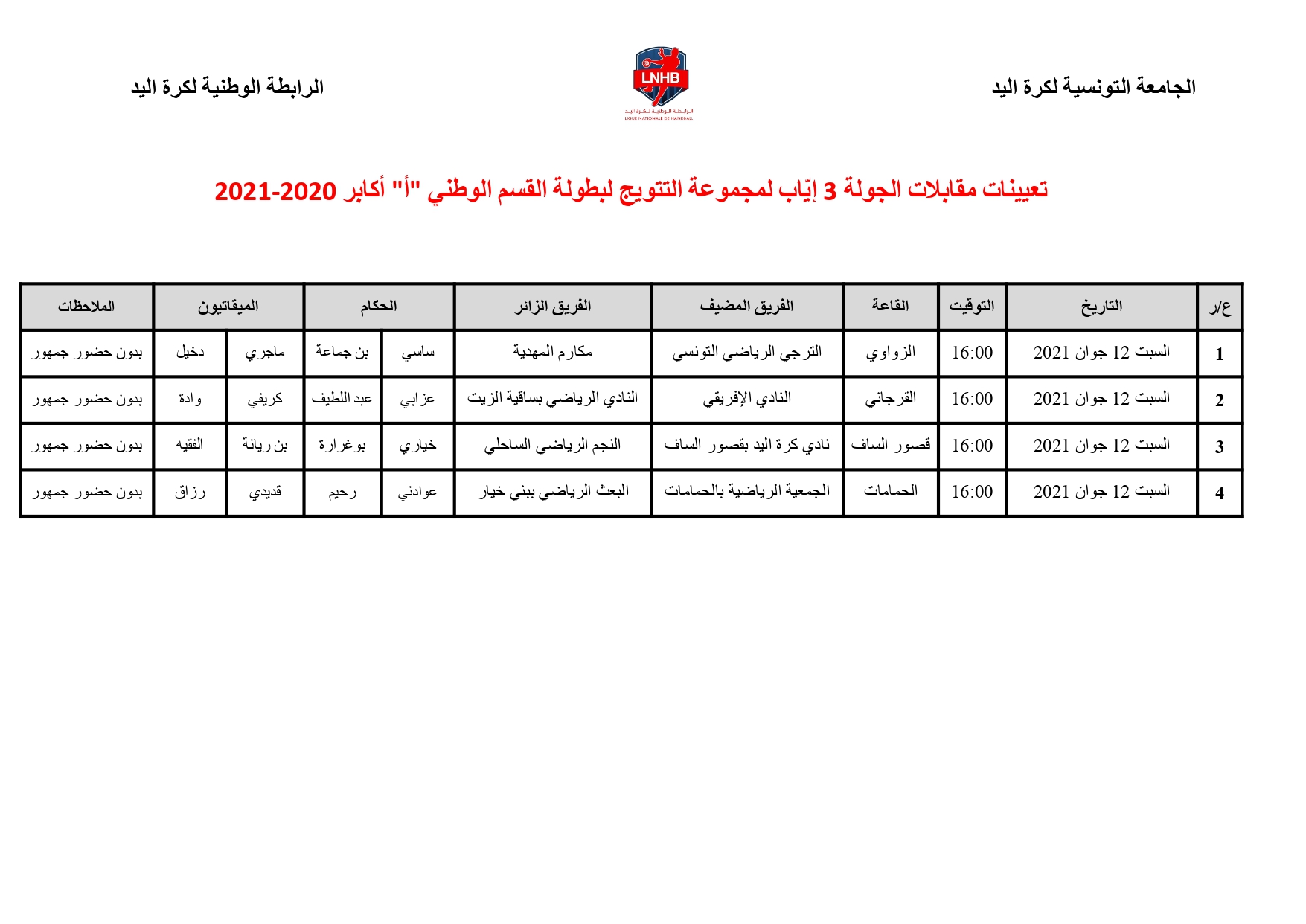 Nationale « A » Hommes / PLAY-OFF : Désignation des Arbitres 3ème journée Retour (samedi 12 juin)