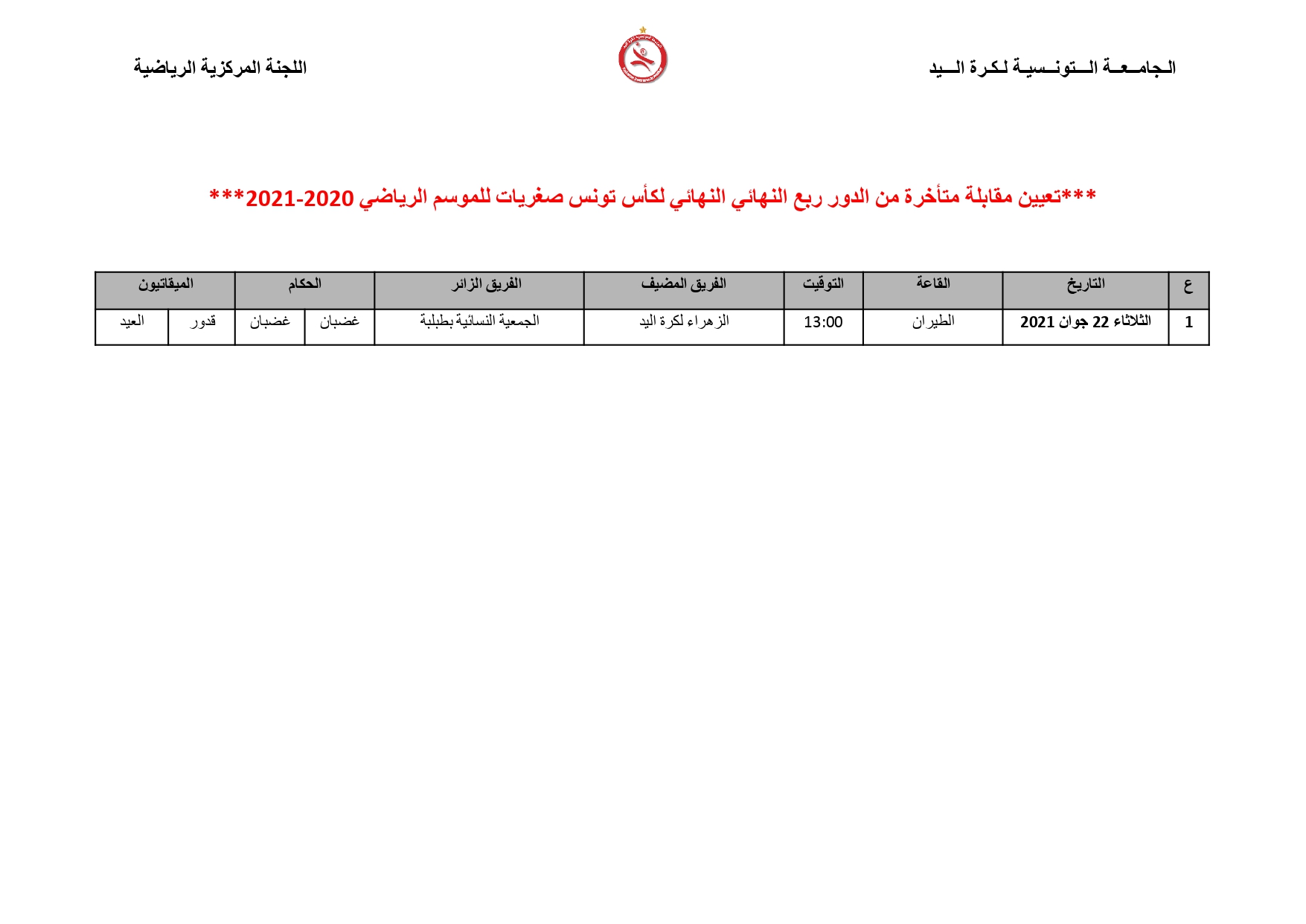 Désignation des Arbitres Match Retard Quarts de Finale Coupe de Tunisie Cadettes Filles (Mardi 22 juin)