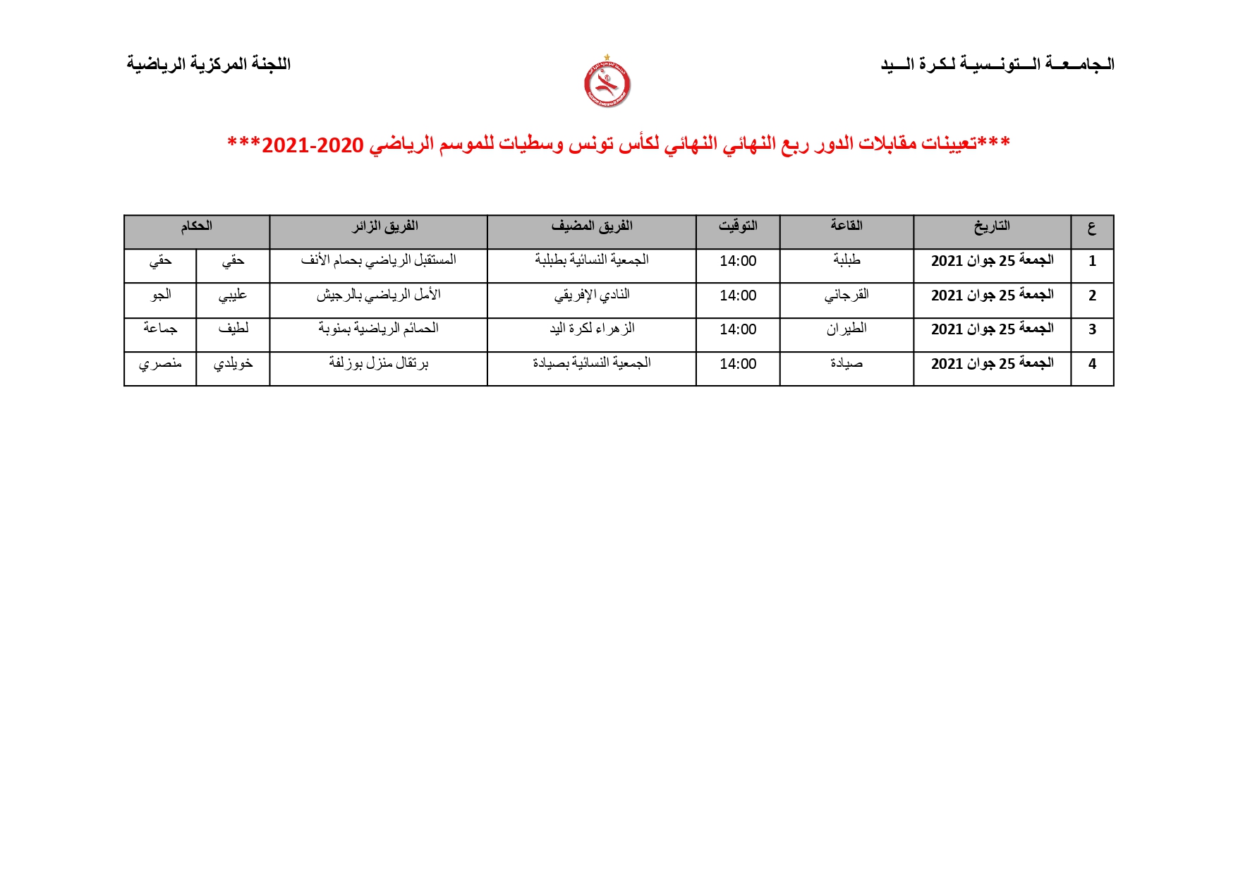 Désignation des Arbitres Quarts de Finale Coupe de Tunisie Juniors Filles (Vendredi 25 juin) 21 juin 2021 Communiqués, Désignations, Featured, Les News de la FTHB, Photo, Publications Partager Facebook Twitter Google + Partager :Cliquez pour partager sur Twitter(ouvre dans une nouvelle fenêtre)Cliquez pour partager sur Facebook(ouvre dans une nouvelle fenêtre)Cliquez pour partager sur Google+(ouvre dans une nouvelle fenêtre) Articles similaires Partager Facebook Twitter Google +