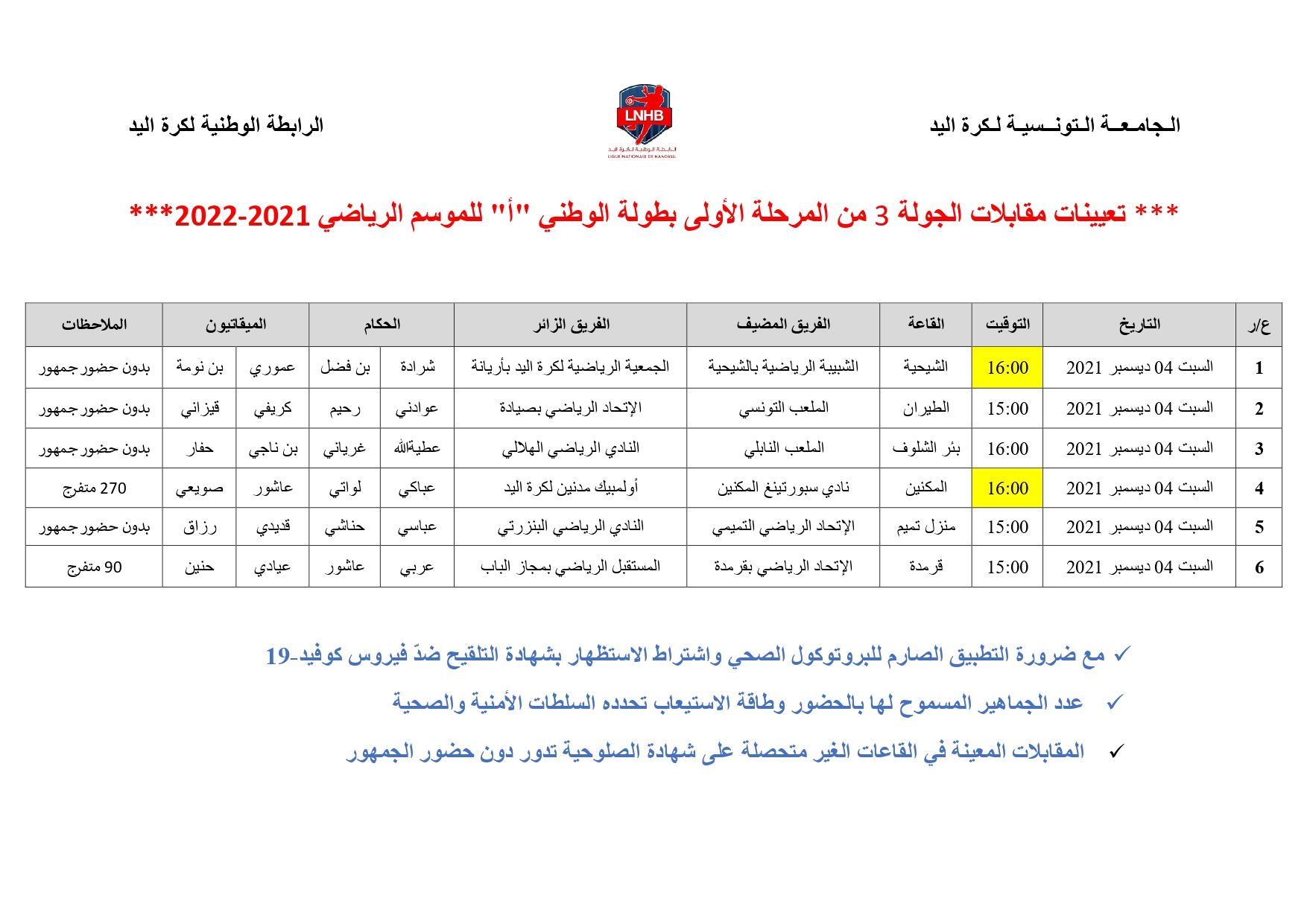 Nationale A Hommes : Désignation Arbitres 3ème journée (Samedi 4/12) 3 décembre 2021 Communiqués, Désignations, Featured, Les News de la FTHB, Photo, Publications Partager Facebook Twitter Google + Partager :Cliquez pour partager sur Twitter(ouvre dans une nouvelle fenêtre)Cliquez pour partager sur Facebook(ouvre dans une nouvelle fenêtre)Cliquez pour partager sur Google+(ouvre dans une nouvelle fenêtre) Articles similaires Partager Facebook Twitter Google +