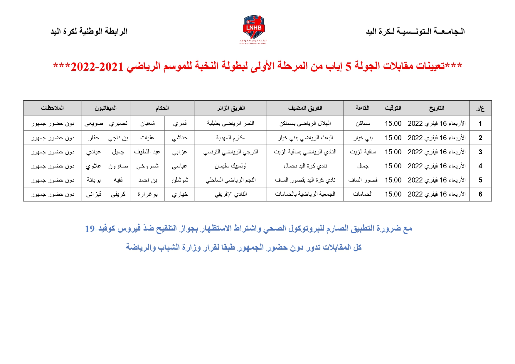 Championnat Elite Hommes : Désignation Arbitres 5ème journée Retour (Mercredi 16 février) 14 février 2022 Communiqués, Désignations, Featured, Les News de la FTHB, Photo, Publications Partager Facebook Twitter Google + Partager :Cliquez pour partager sur Twitter(ouvre dans une nouvelle fenêtre)Cliquez pour partager sur Facebook(ouvre dans une nouvelle fenêtre)Cliquez pour partager sur Google+(ouvre dans une nouvelle fenêtre) Articles similaires Partager Facebook Twitter Google +