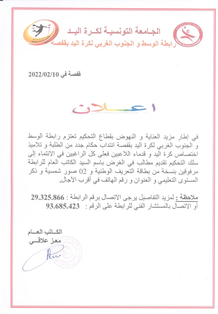 رابطة الوسط والجنوب الغربي بقفصة : إنتداب حكام مستجدّين