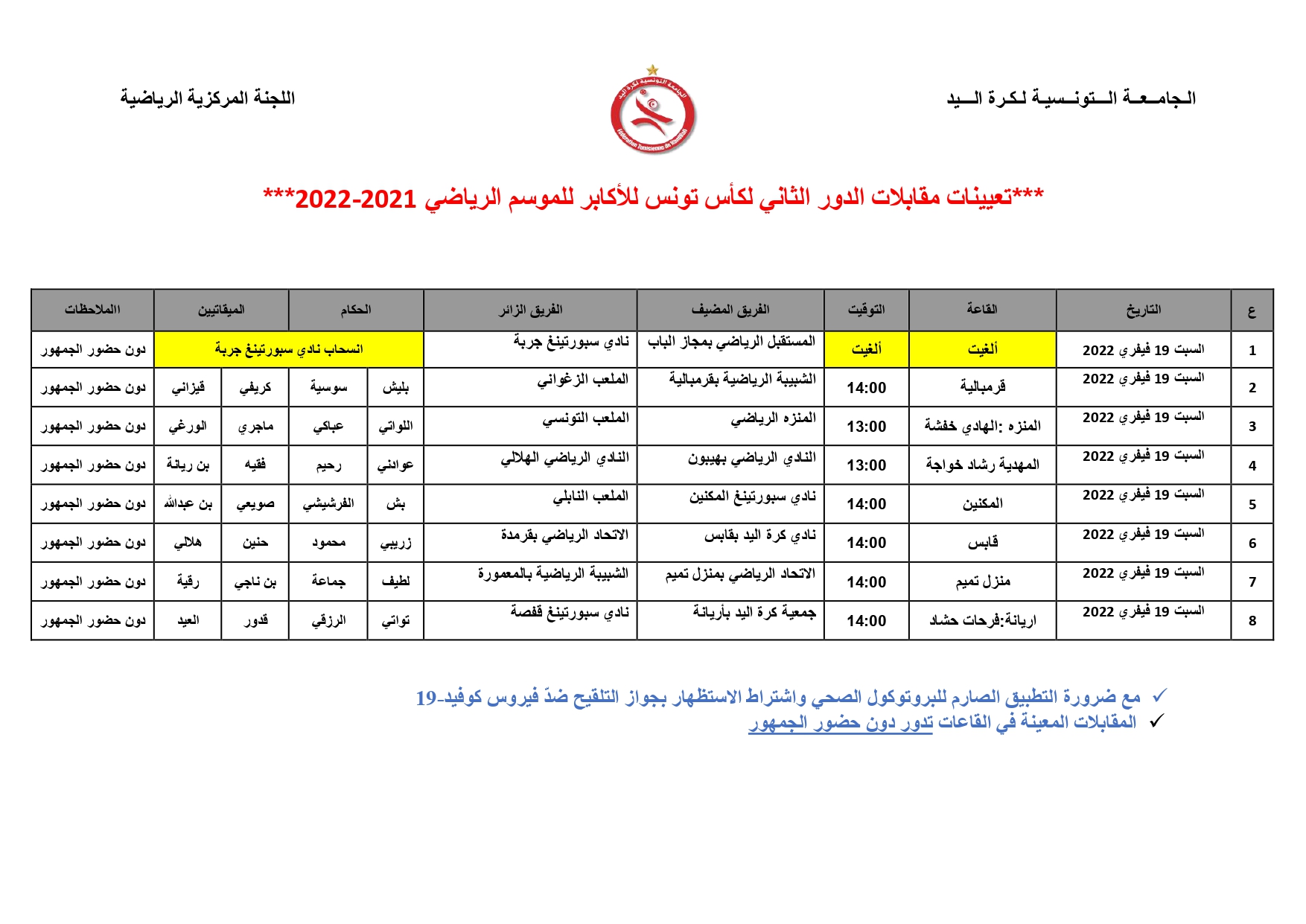 Désignation Arbitres 2ème Tour Coupe de Tunisie Séniors Hommes (Samedi 19 février)
