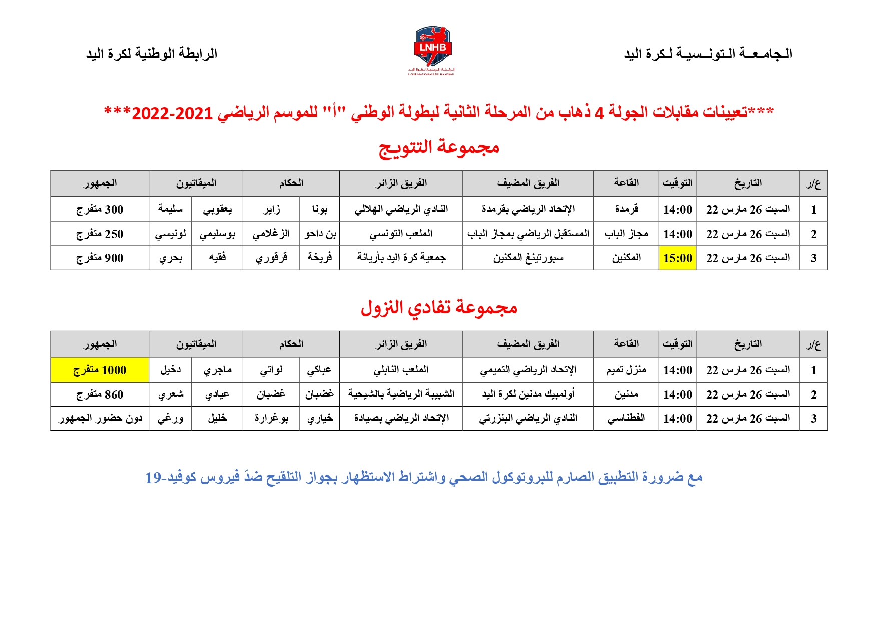 Nationale A Hommes : Désignation Arbitres 4ème journée PLAY-OFF & PLAY-OUT (Samedi 26 mars)