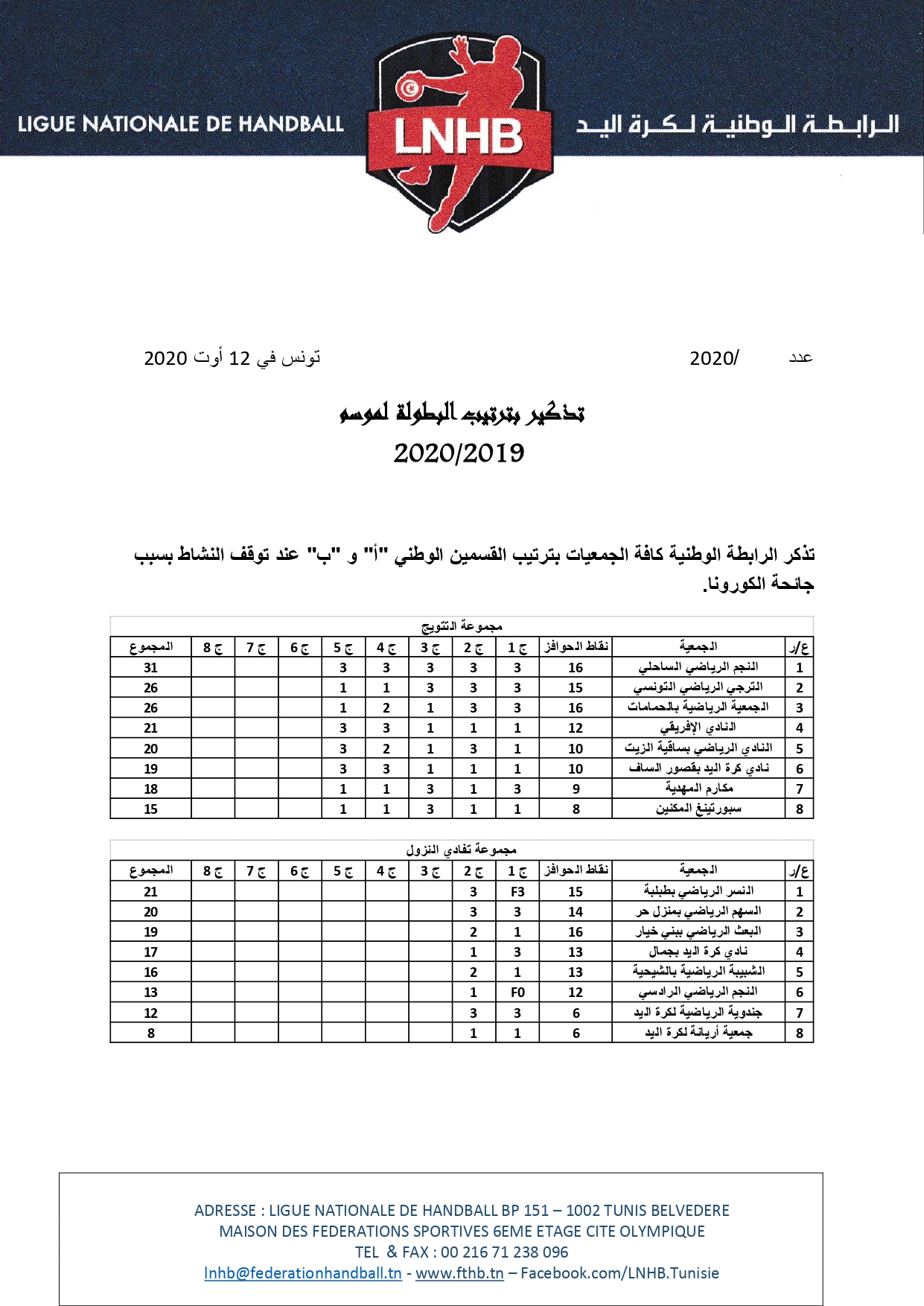 Communiqué de la Ligue Nationale : Rappel des classements des compétitions 14 août 2020 Communiqués, Désignations, Featured, Les News de la FTHB, Photo, Publications Partager Facebook Twitter Google + Partager :Cliquez pour partager sur Twitter(ouvre dans une nouvelle fenêtre)Cliquez pour partager sur Facebook(ouvre dans une nouvelle fenêtre)Cliquez pour partager sur Google+(ouvre dans une nouvelle fenêtre) Articles similaires Partager Facebook Twitter Google +