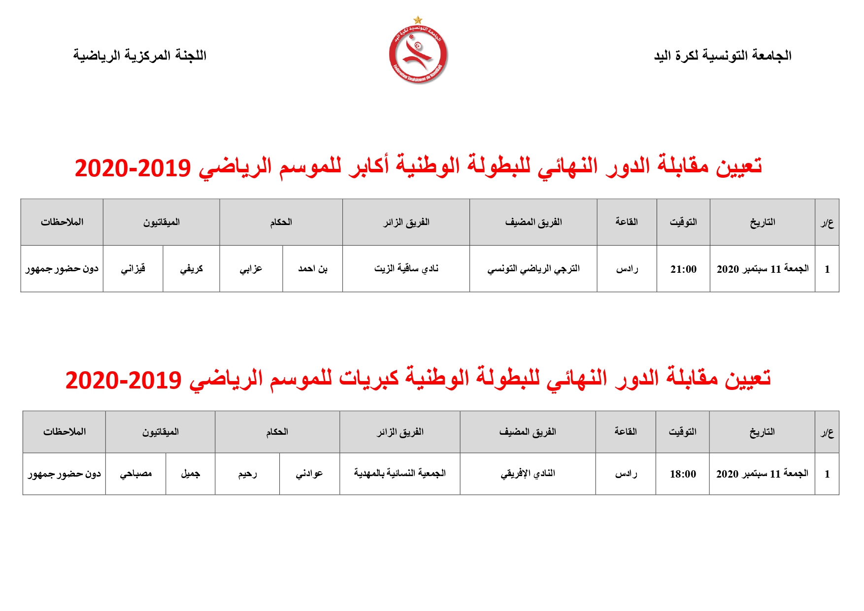 Finales Championnats Hommes & Dames : Désignation des Arbitres