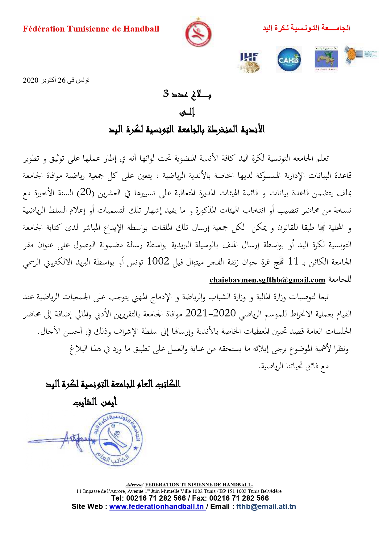 Communiqué N° 3 de l’Ouverture de la Nouvelle Saison 2020-2021 6 novembre 2020 Communiqués, Désignations, Featured, Les News de la FTHB, Photo, Publications Partager Facebook Twitter Google + Partager :Cliquez pour partager sur Twitter(ouvre dans une nouvelle fenêtre)Cliquez pour partager sur Facebook(ouvre dans une nouvelle fenêtre)Cliquez pour partager sur Google+(ouvre dans une nouvelle fenêtre) Articles similaires Partager Facebook Twitter Google +