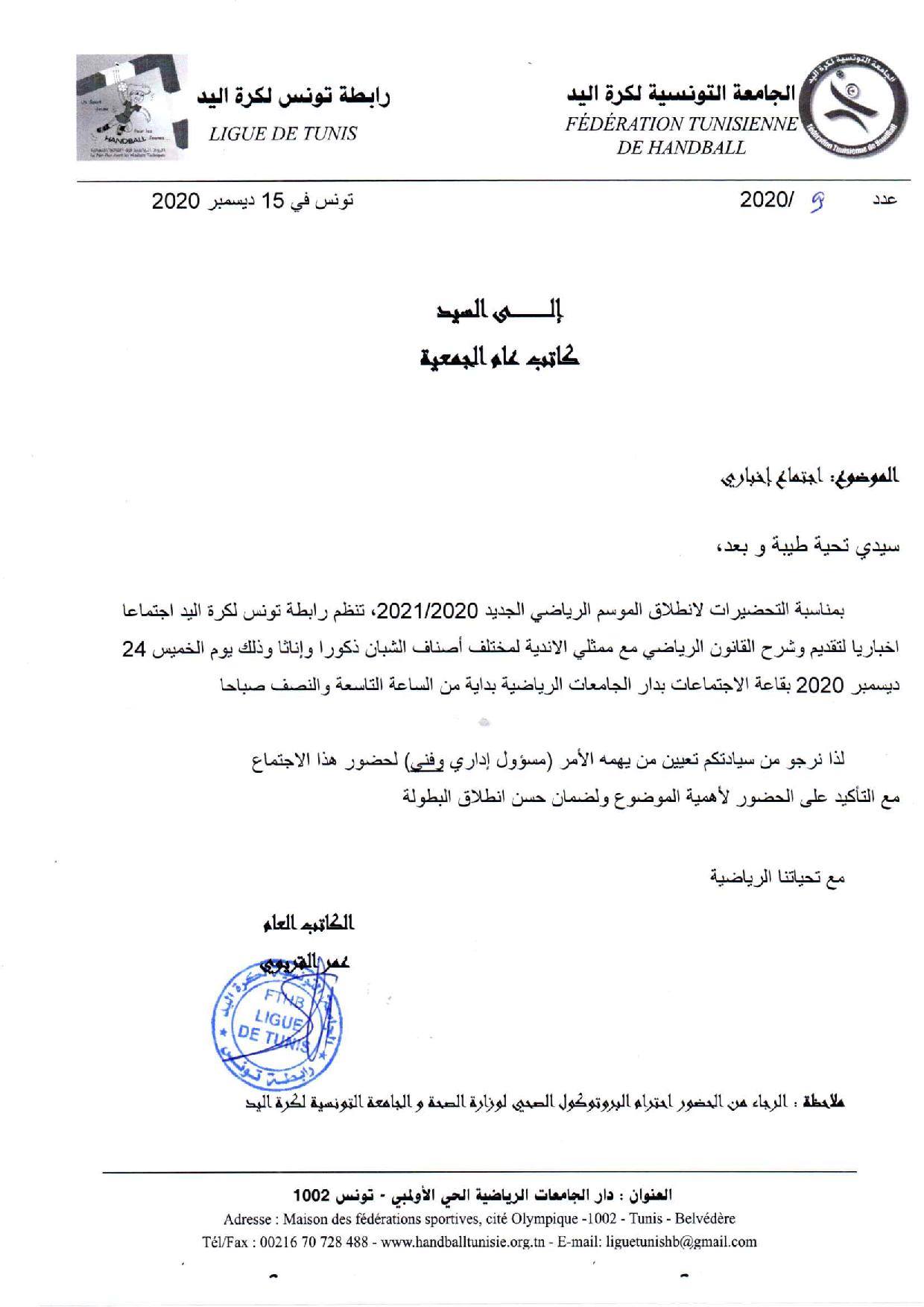 Communiqué Ligue de Tunis : Réunion avec les clubs pour les compétitions des jeunes
