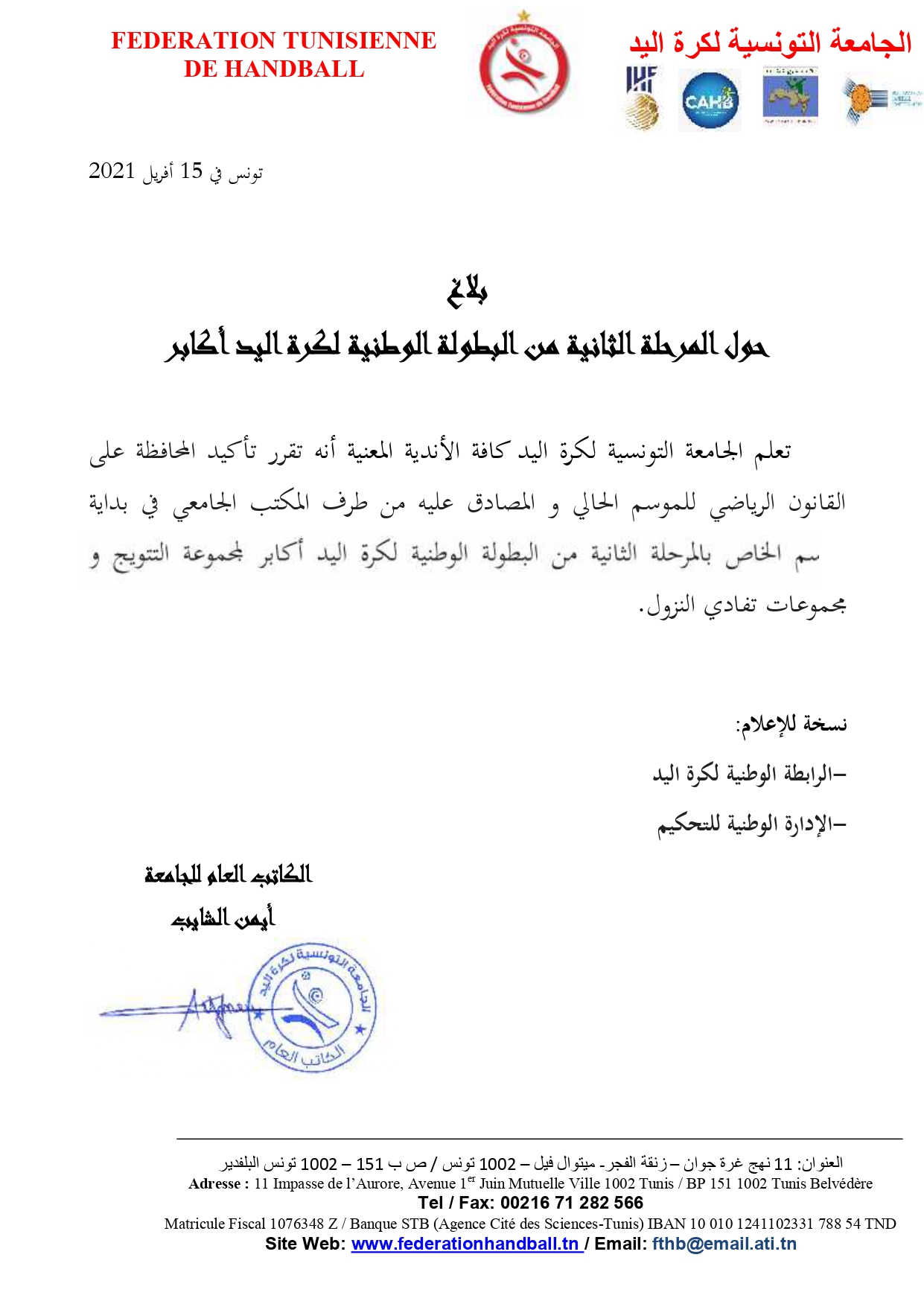Communiqué : 2ème phase Championnat Nationale « A » Hommes 2020-2021