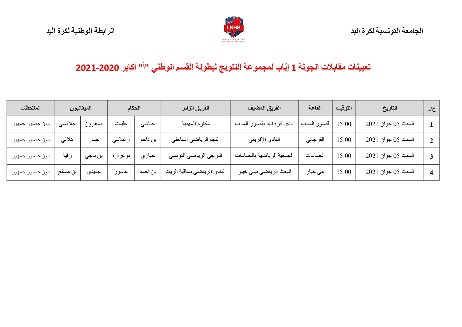 Nationale « A » Hommes / PLAY-OFF : Désignation des Arbitres 8ème journée (samedi 5 juin) 3 juin 2021 Communiqués, Désignations, Featured, Les News de la FTHB, Photo, Publications Partager Facebook Twitter Google + Partager :Cliquez pour partager sur Twitter(ouvre dans une nouvelle fenêtre)Cliquez pour partager sur Facebook(ouvre dans une nouvelle fenêtre)Cliquez pour partager sur Google+(ouvre dans une nouvelle fenêtre) Articles similaires Partager Facebook Twitter Google +