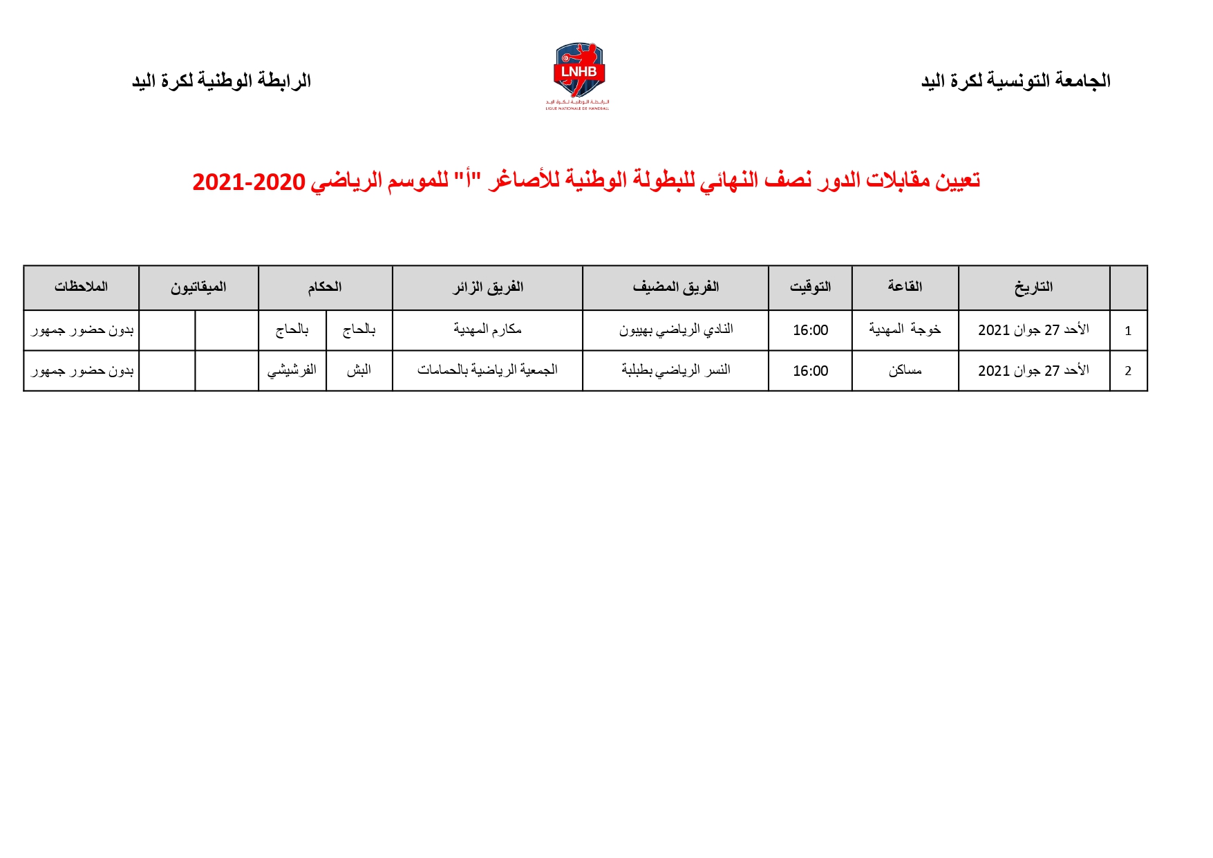 Désignation des Arbitres Demi-finales Championnat Cadets A (Dimanche 27 juin) 22 juin 2021 Communiqués, Désignations, Featured, Les News de la FTHB, Photo, Publications Partager Facebook Twitter Google + Partager :Cliquez pour partager sur Twitter(ouvre dans une nouvelle fenêtre)Cliquez pour partager sur Facebook(ouvre dans une nouvelle fenêtre)Cliquez pour partager sur Google+(ouvre dans une nouvelle fenêtre) Articles similaires Partager Facebook Twitter Google +