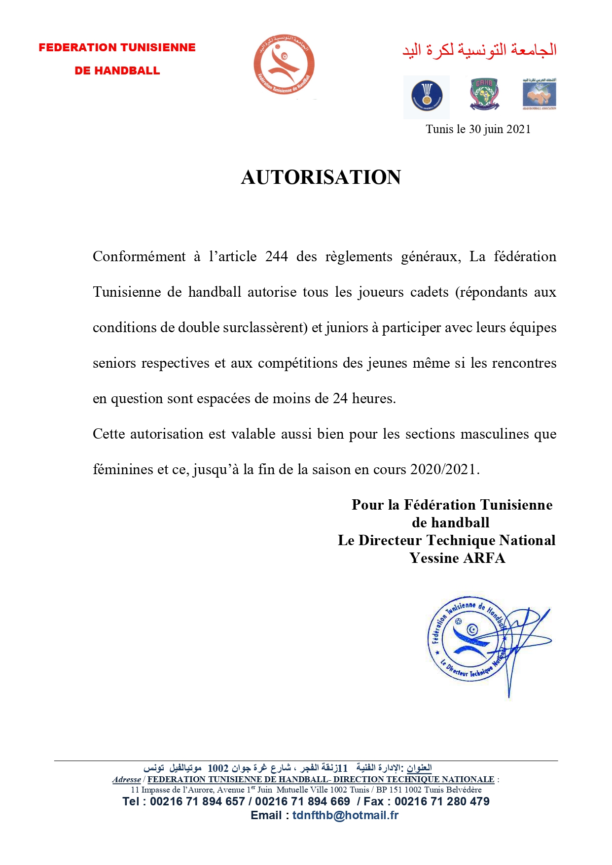 Communiqué de la Direction Technique Nationale 30 juin 2021 Communiqués, Désignations, Featured, Les News de la FTHB, Photo, Publications Partager Facebook Twitter Google + Partager :Cliquez pour partager sur Twitter(ouvre dans une nouvelle fenêtre)Cliquez pour partager sur Facebook(ouvre dans une nouvelle fenêtre)Cliquez pour partager sur Google+(ouvre dans une nouvelle fenêtre) Articles similaires Partager Facebook Twitter Google +