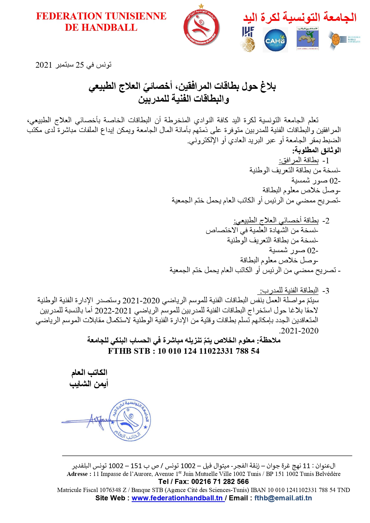 Communiqué : Cartes accompagnateurs, entraineurs et kinés 28 septembre 2021 Communiqués, Désignations, Les News de la FTHB, Photo, Publications Partager Facebook Twitter Google + Partager :Cliquez pour partager sur Twitter(ouvre dans une nouvelle fenêtre)Cliquez pour partager sur Facebook(ouvre dans une nouvelle fenêtre)Cliquez pour partager sur Google+(ouvre dans une nouvelle fenêtre) Articles similaires Partager Facebook Twitter Google +