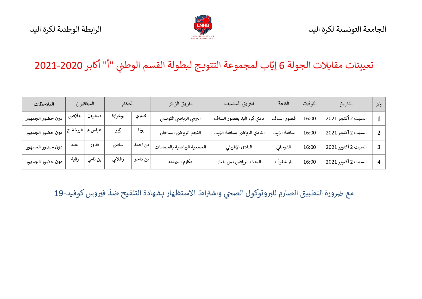 Nationale A Hommes 2020-2021 : Désignation des Arbitres 6ème journée Retour PLAY-OFF (Samedi 02-10-2021)