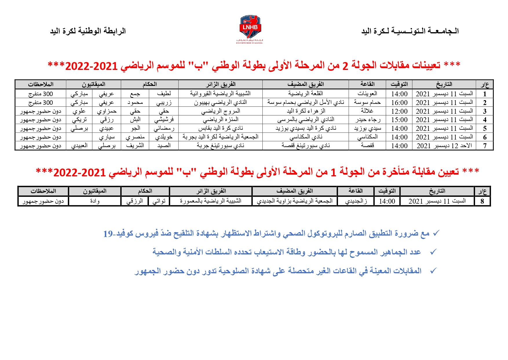 Nationale B Hommes : Désignation Arbitres 2ème journée (Samedi 11/12)