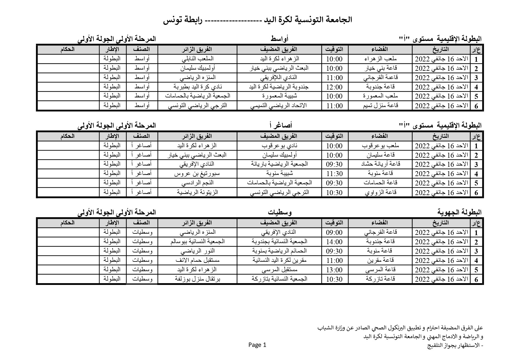 Désignation 1ère journée Championnats Sectoriels Ligue Tunis & Cap Bon : Cadets A, Juniors Garçons et Juniors Filles 11 janvier 2022 Communiqués, Désignations, Featured, Les News de la FTHB, Photo, Publications Partager Facebook Twitter Google + Partager :Cliquez pour partager sur Twitter(ouvre dans une nouvelle fenêtre)Cliquez pour partager sur Facebook(ouvre dans une nouvelle fenêtre)Cliquez pour partager sur Google+(ouvre dans une nouvelle fenêtre) Articles similaires Partager Facebook Twitter Google +
