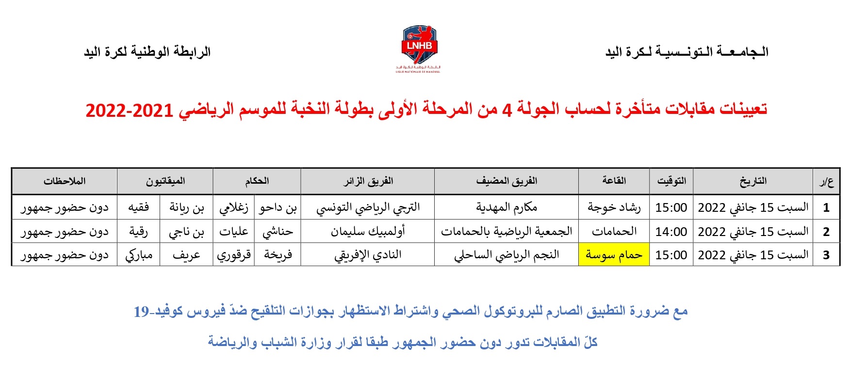 Elite Hommes : Désignation Arbitres Matchs Retards 4ème journée (Samedi 15 janvier)