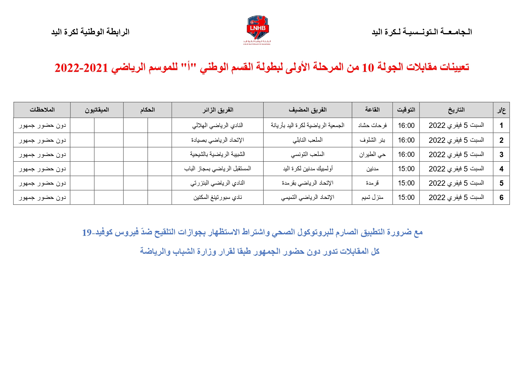 Nationale « A » Hommes : Désignation 10ème journée (Samedi 5 février)