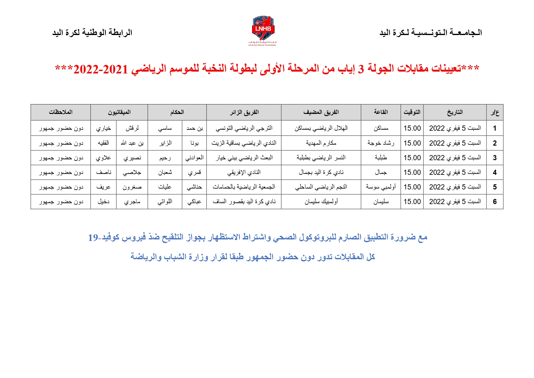 Elite Hommes : Désignation Arbitres 3ème journée Retour (Samedi 5 février) 4 février 2022 Communiqués, Désignations, Featured, Les News de la FTHB, Photo, Publications Partager Facebook Twitter Google + Partager :Cliquez pour partager sur Twitter(ouvre dans une nouvelle fenêtre)Cliquez pour partager sur Facebook(ouvre dans une nouvelle fenêtre)Cliquez pour partager sur Google+(ouvre dans une nouvelle fenêtre) Articles similaires Partager Facebook Twitter Google +