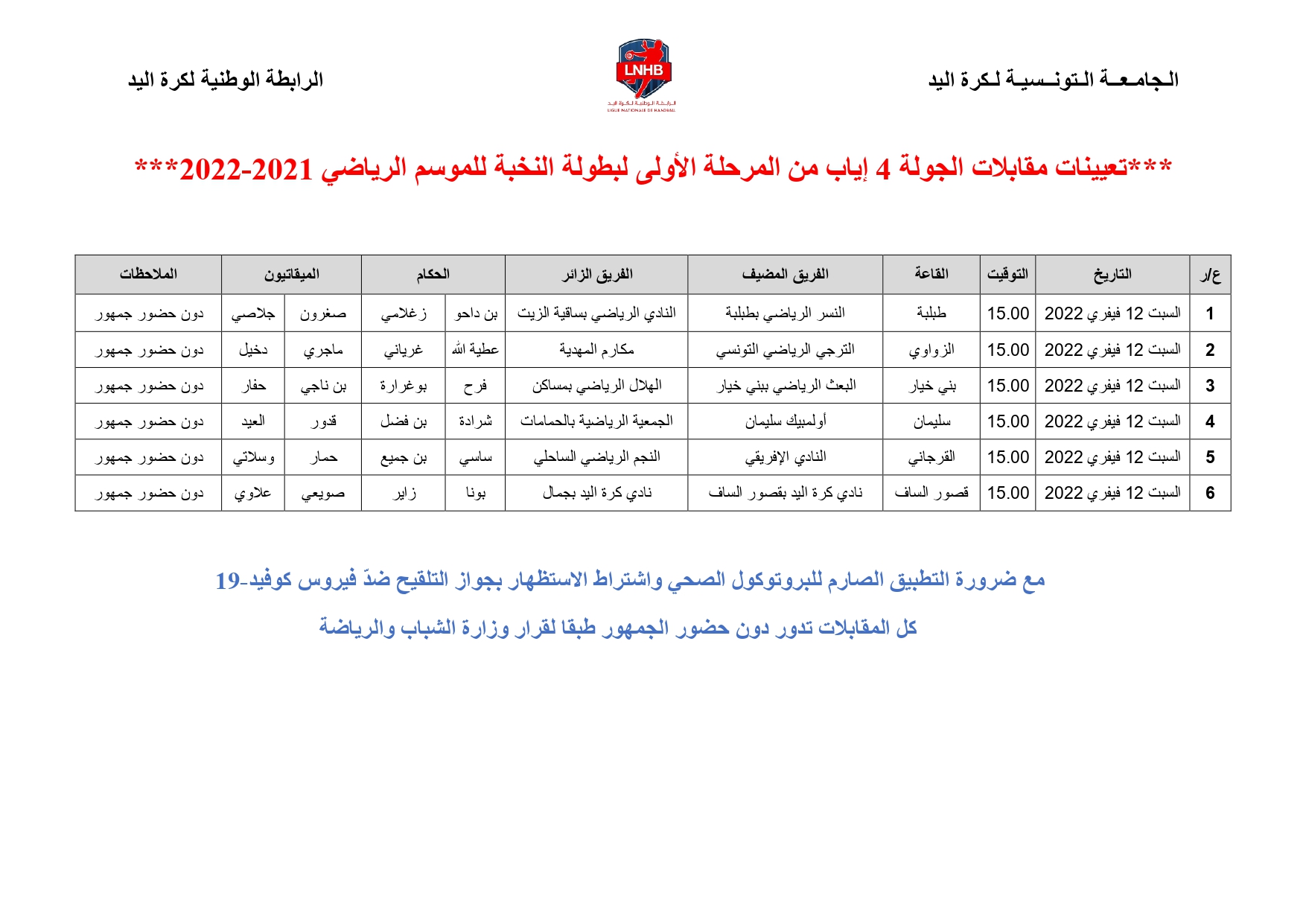 Championnat Elite Hommes : Désignation Arbitres 4ème journée Retour (Samedi 12 février) 10 février 2022 Communiqués, Désignations, Featured, Les News de la FTHB, Photo, Publications Partager Facebook Twitter Google + Partager :Cliquez pour partager sur Twitter(ouvre dans une nouvelle fenêtre)Cliquez pour partager sur Facebook(ouvre dans une nouvelle fenêtre)Cliquez pour partager sur Google+(ouvre dans une nouvelle fenêtre) Articles similaires Partager Facebook Twitter Google +