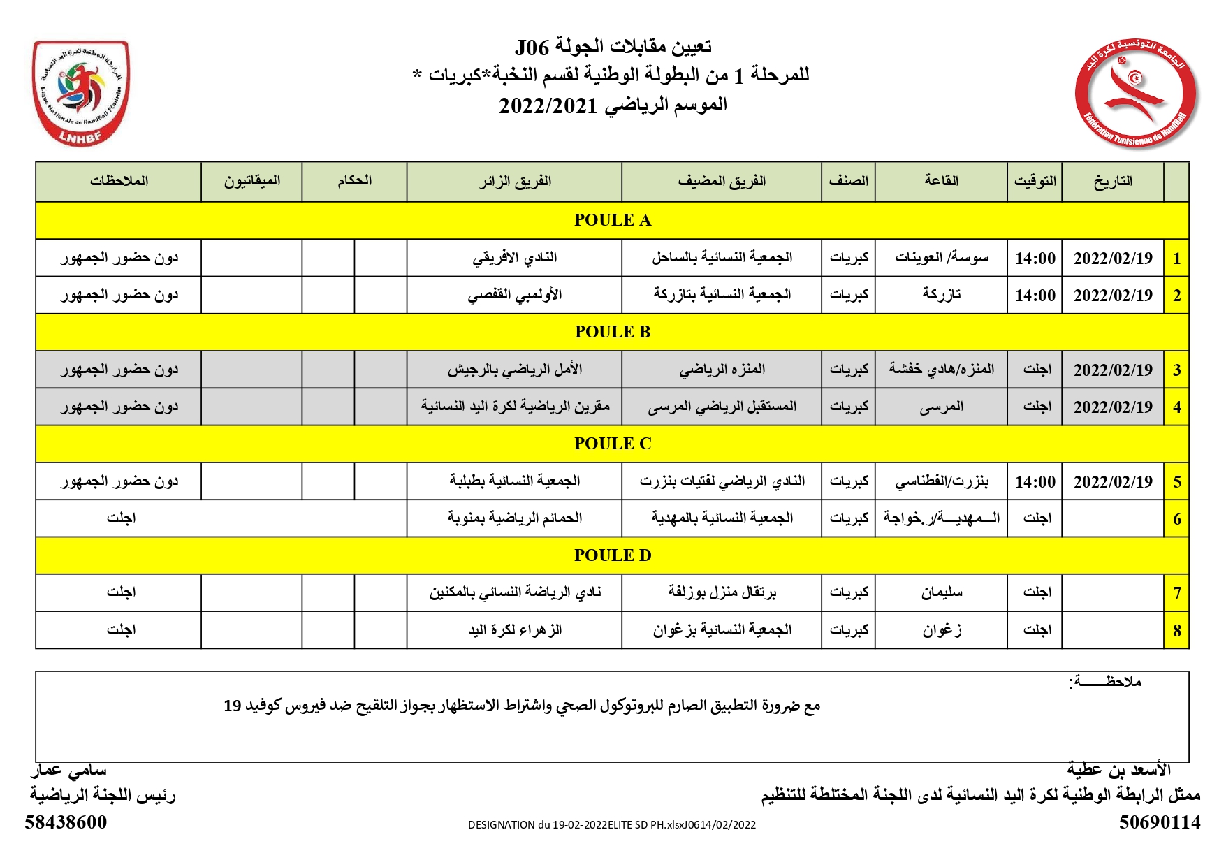 Championnat Elite Dames : Désignation 6ème journée (Samedi 19 février) 14 février 2022 Communiqués, Désignations, Featured, Les News de la FTHB, Photo, Publications Partager Facebook Twitter Google + Partager :Cliquez pour partager sur Twitter(ouvre dans une nouvelle fenêtre)Cliquez pour partager sur Facebook(ouvre dans une nouvelle fenêtre)Cliquez pour partager sur Google+(ouvre dans une nouvelle fenêtre) Articles similaires Partager Facebook Twitter Google +