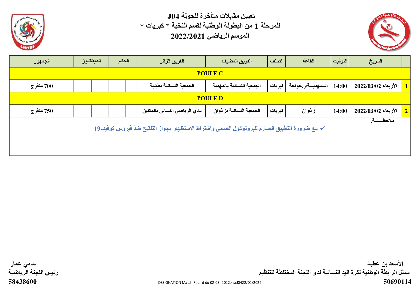 Elite Dames : Désignation Matchs Retards 4ème journée (Mercredi 2 mars) 22 février 2022 Communiqués, Désignations, Featured, Les News de la FTHB, Photo, Publications Partager Facebook Twitter Google + Partager :Cliquez pour partager sur Twitter(ouvre dans une nouvelle fenêtre)Cliquez pour partager sur Facebook(ouvre dans une nouvelle fenêtre)Cliquez pour partager sur Google+(ouvre dans une nouvelle fenêtre) Articles similaires Partager Facebook Twitter Google +