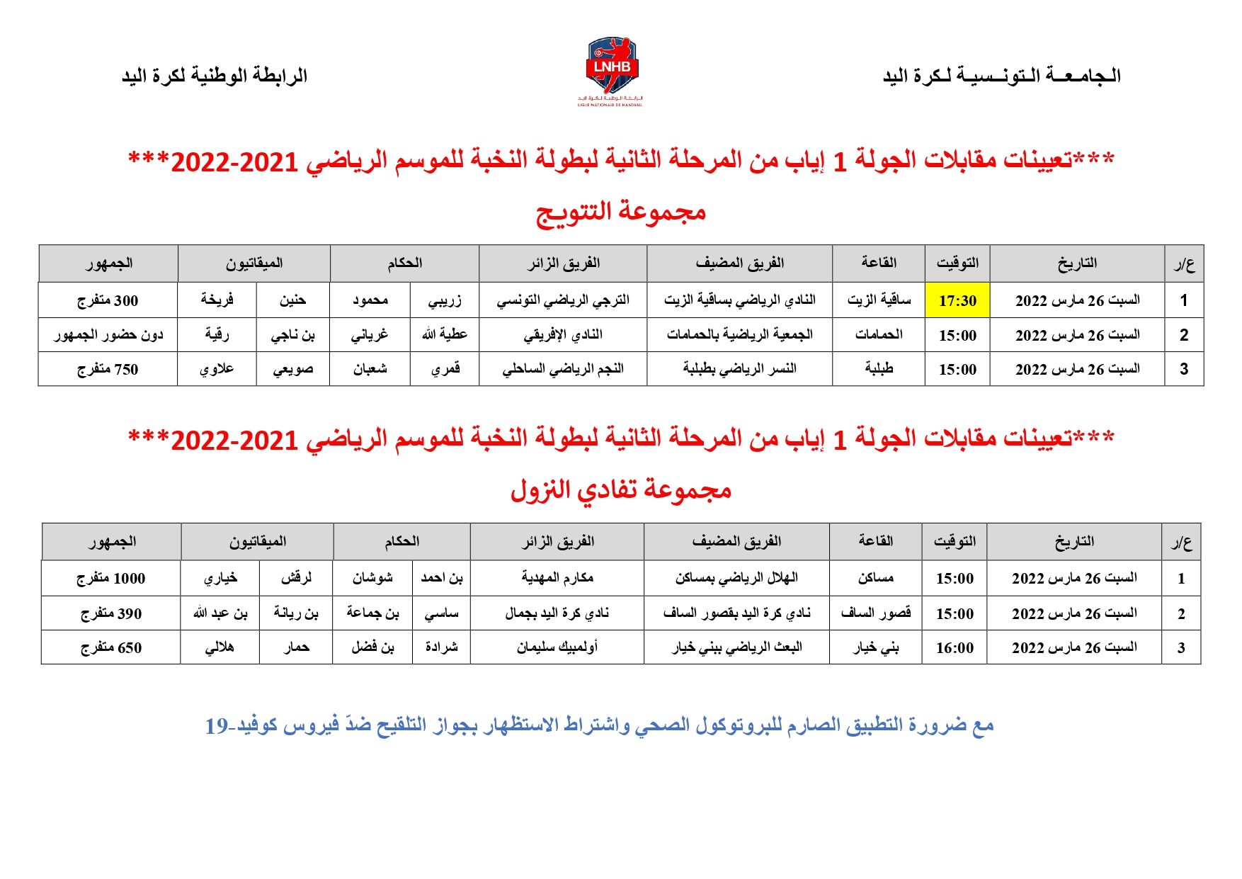 Elite Hommes : Désignation Arbitres 2ème journée Retour PLAY-OFF & PLAY-OUT (Samedi 26 mars) 25 mars 2022 Communiqués, Désignations, Featured, Les News de la FTHB, Photo, Publications Partager Facebook Twitter Google + Partager :Cliquez pour partager sur Twitter(ouvre dans une nouvelle fenêtre)Cliquez pour partager sur Facebook(ouvre dans une nouvelle fenêtre)Cliquez pour partager sur Google+(ouvre dans une nouvelle fenêtre) Articles similaires Partager Facebook Twitter Google +