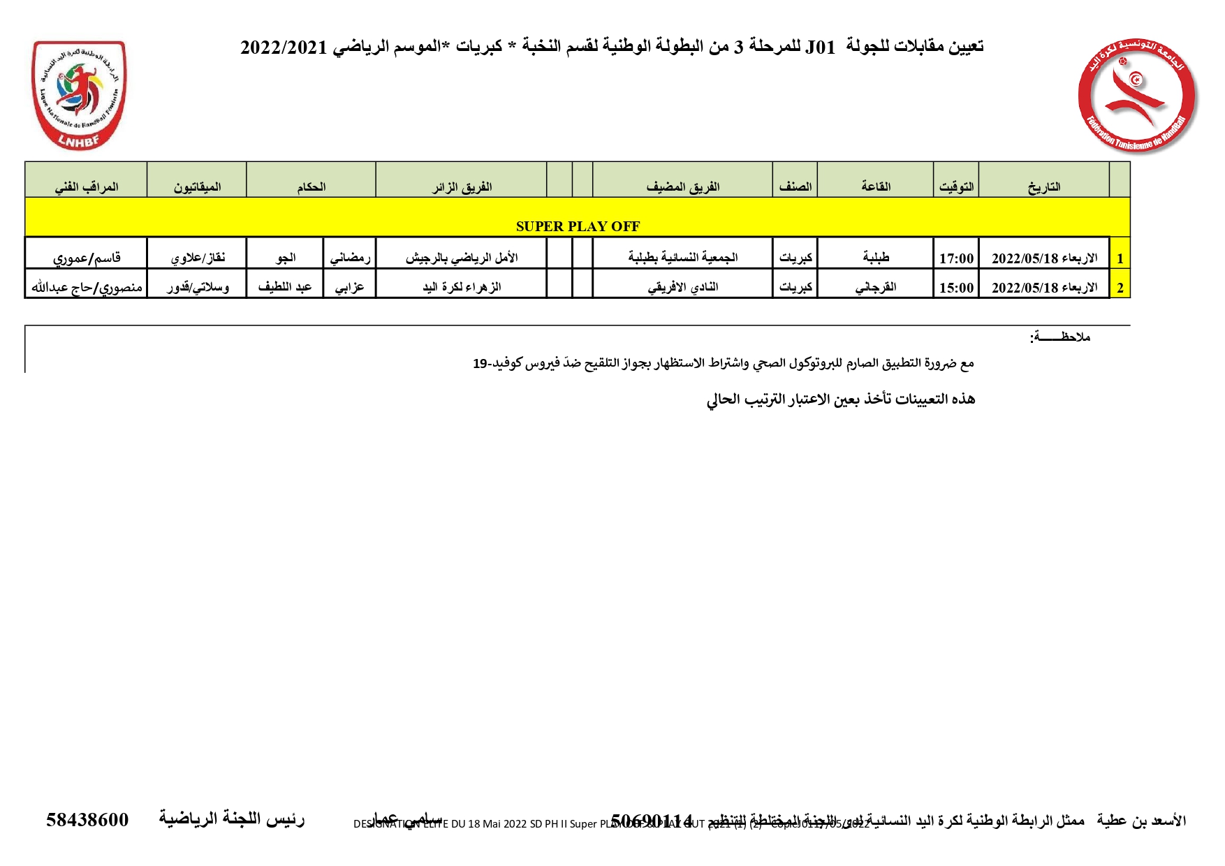Elite Dames : Désignation Arbitres 1ère journée Super PLAY-OFF (Mercredi 18 mai) 17 mai 2022 Communiqués, Désignations, Featured, Les News de la FTHB, Photo, Publications Partager Facebook Twitter Google + Partager :Cliquez pour partager sur Twitter(ouvre dans une nouvelle fenêtre)Cliquez pour partager sur Facebook(ouvre dans une nouvelle fenêtre)Cliquez pour partager sur Google+(ouvre dans une nouvelle fenêtre) Articles similaires Partager Facebook Twitter Google +
