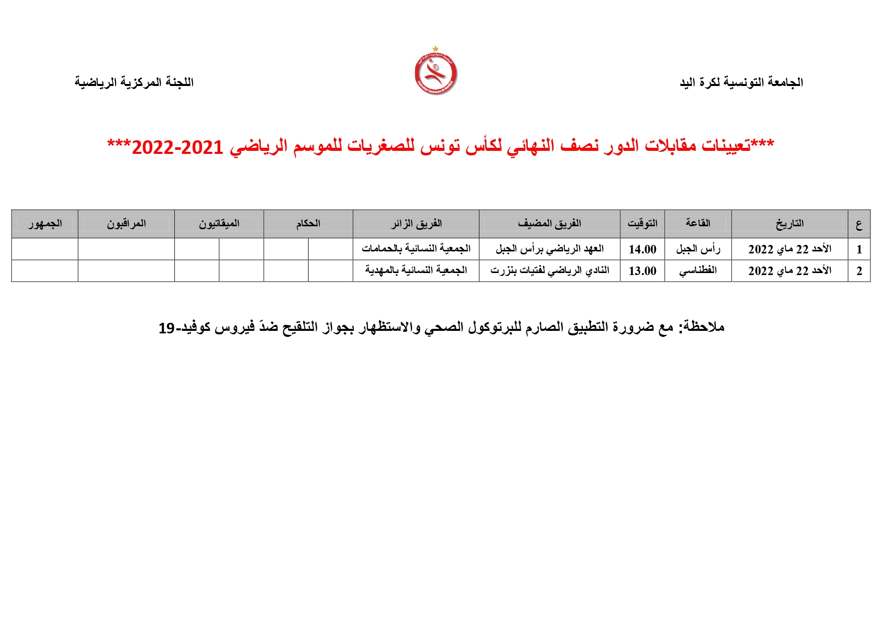 Coupe de Tunisie Cadettes Filles : Désignation Demi-Finales (Dimanche 22 mai) 18 mai 2022 Communiqués, Désignations, Featured, Les News de la FTHB, Photo, Publications Partager Facebook Twitter Google + Partager :Cliquez pour partager sur Twitter(ouvre dans une nouvelle fenêtre)Cliquez pour partager sur Facebook(ouvre dans une nouvelle fenêtre)Cliquez pour partager sur Google+(ouvre dans une nouvelle fenêtre) Articles similaires Partager Facebook Twitter Google +