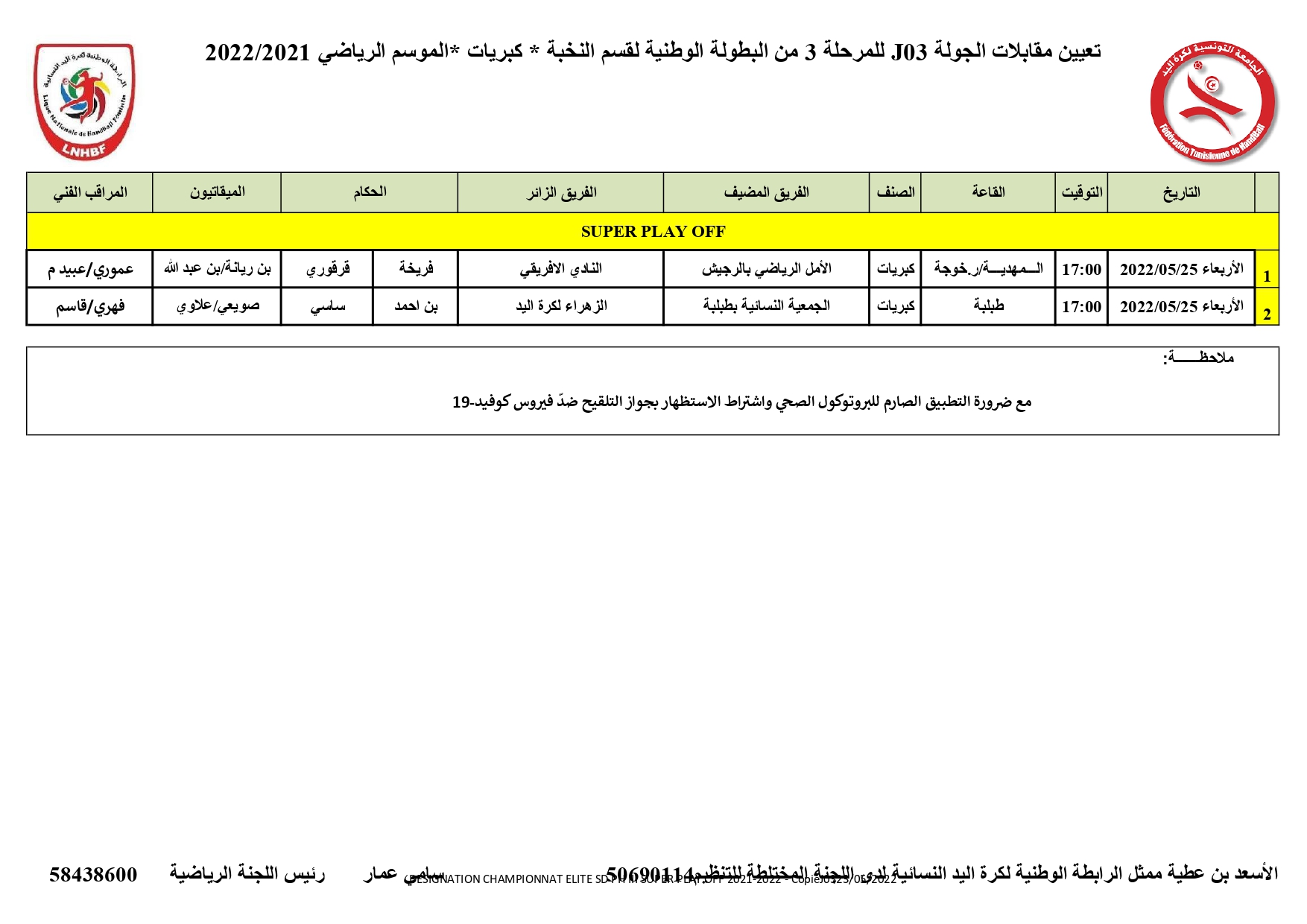 Elite Dames : Désignation Arbitres 3ème journée Super PLAY-OFF (Mercredi 25 mai)