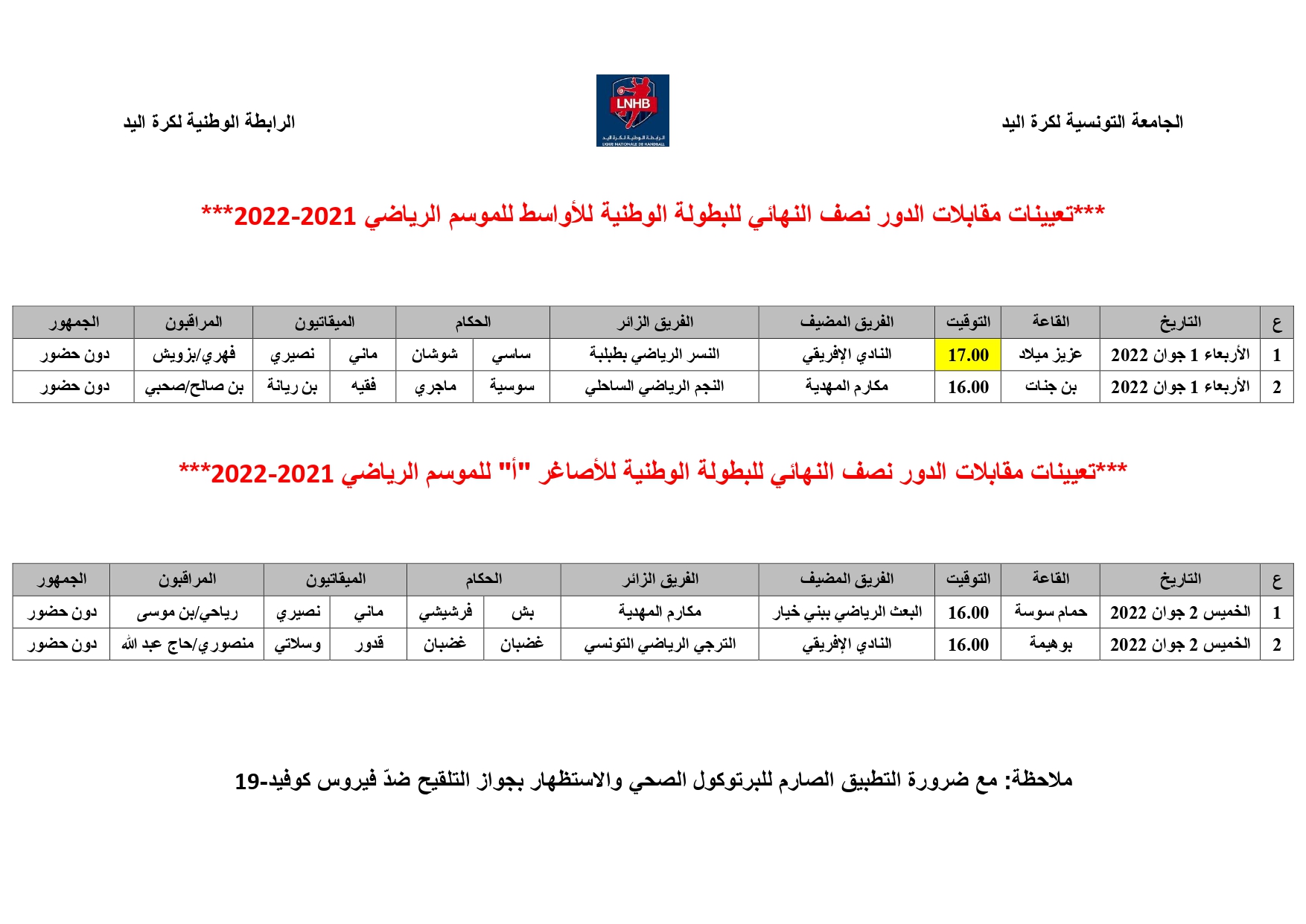 Désignation Arbitres Demi-Finales Championnats Cadets A & Juniors Garçons (1er & 2 juin)