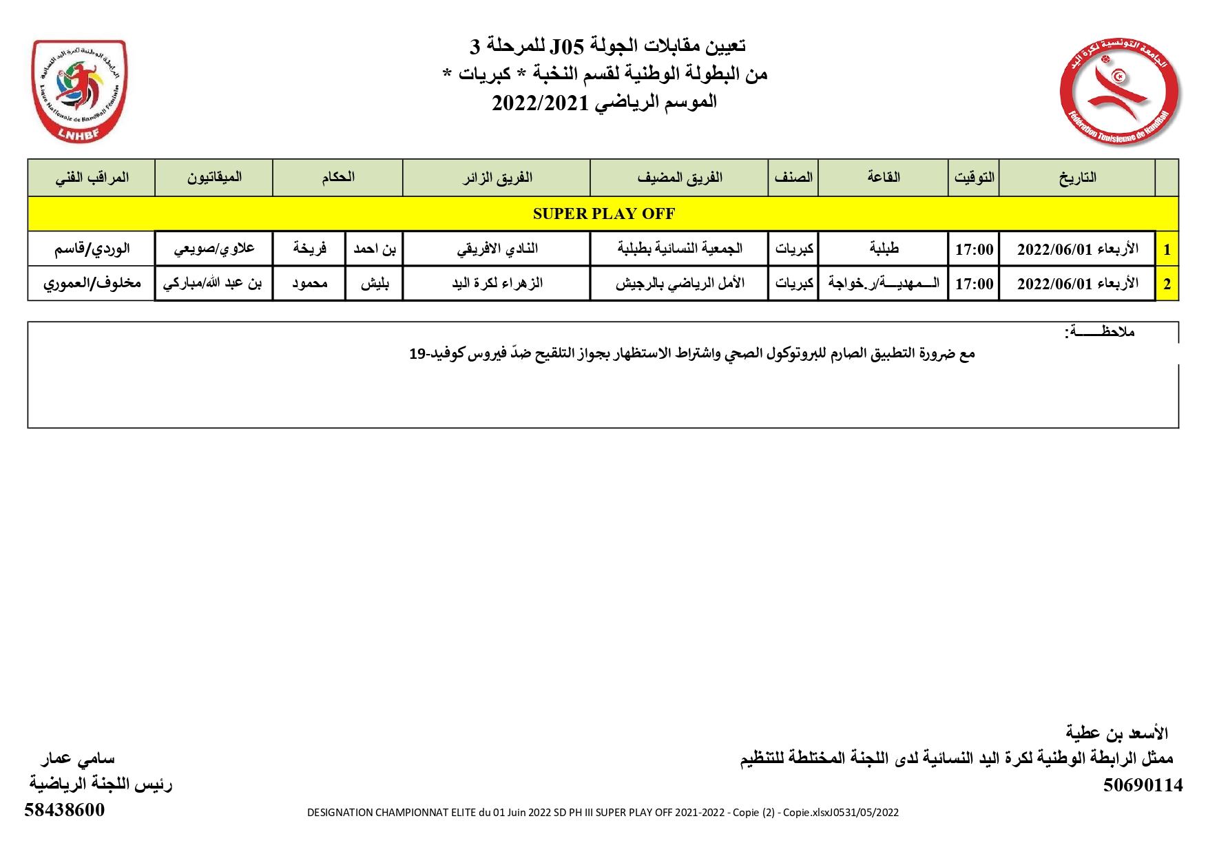 Elite Dames : Désignation Arbitres 5ème journée Super PLAY-OFF (Mercredi 1er juin)